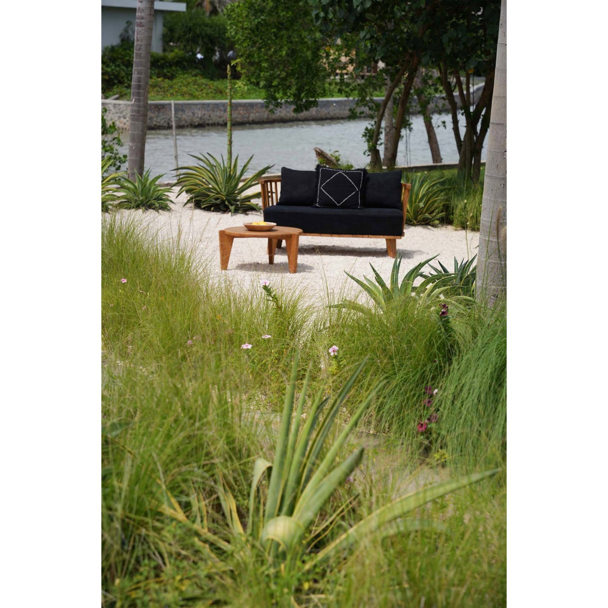 De Malawi Tweezitter in natuurlijk zwart combineert comfort en stijl. Handgemaakt van gerecycled teakhout, met zachte kussens en rugleuningen – perfect voor binnen of overdekte buitenruimtes.
